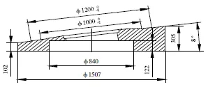 1)先在2.5m立車上分別把蝶板和壓環上的各止口加工到圖紙要求尺寸,外圓不加工;