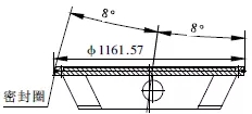 閥體起密封作為的為密封圈,焊接在閥體內(圖5)。在2.5m立車上將組焊好的閥體裝夾在閥體密封圈加工工裝上,將立車刀桿旋轉8°,根據圖紙設計要求,找正后沿圓錐母線方向走刀,車至未焊不銹鋼前的尺寸。然后堆焊不銹鋼,最后將焊好不銹鋼的閥體重新上立車,按上述方法車閥體密封圈至圖紙要求尺寸。最后在立車刀架上裝磨頭,對閥體密封圈進行磨削處理,使其達到圖紙設計粗糙度要求。
