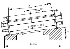 三偏心金屬硬密封蝶閥的密封面是斜錐面,閥體密封圈(圖1)與蝶板組合件密封圈(圖2)的接觸為面接觸,其工作原理是靠驅動裝置扭力直接帶動蝶板組合件,使蝶板組合件密封圈與閥體密封圈充分接觸后產生彈性變形而密封。三偏心金屬硬密封蝶閥作為一種高性能閥門,具有耐腐蝕性好、密封可靠、開啟力矩小等優點。三偏心硬密封電動蝶閥DN1200,其中閥體密封圈材料為1Cr18Ni9Ti,蝶板組合件密封圈材料為復合的不銹鋼板與石棉板夾層組合件,閥體密封圈與蝶板組合件密封圈的加工質量直接決定蝶閥密封性能。