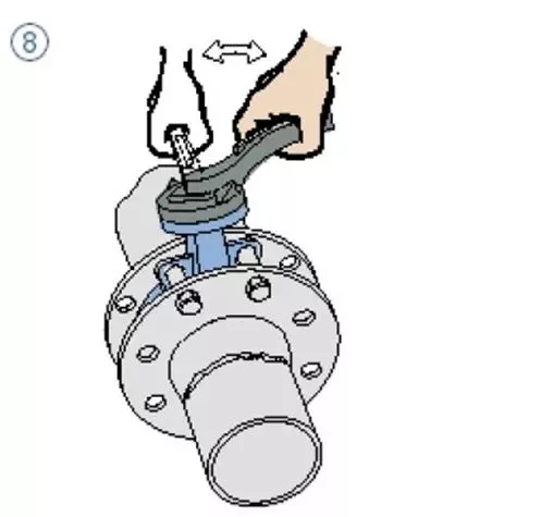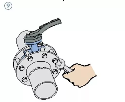 7、蝶閥法蘭盤在安裝時必須確保法蘭面和密封橡膠對中,螺釘均勻擰緊,密封面必須貼合完整;如果出現螺釘擰緊力度不均勻會出現橡膠凸起卡住蝶板,或頂住蝶板造成閥桿處泄漏。