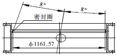 閥體起密封作為的為密封圈,焊接在閥體內(圖5)。在2.5m立車上將組焊好的閥體裝夾在閥體密封圈加工工裝上,將立車刀桿旋轉8°,根據圖紙設計要求,找正后沿圓錐母線方向走刀,車至未焊不銹鋼前的尺寸。然后堆焊不銹鋼,最后將焊好不銹鋼的閥體重新上立車,按上述方法車閥體密封圈至圖紙要求尺寸。最后在立車刀架上裝磨頭,對閥體密封圈進行磨削處理,使其達到圖紙設計粗糙度要求。